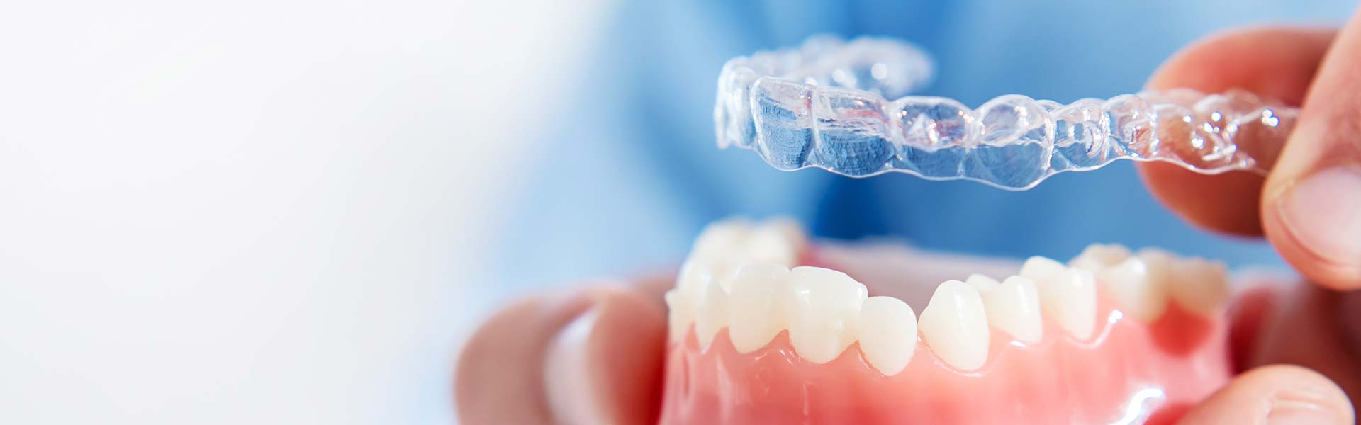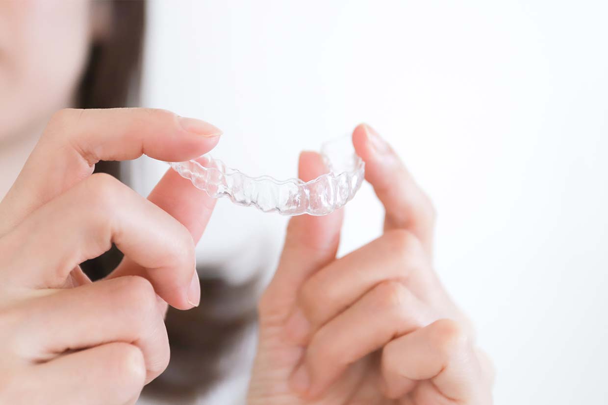 取り外しができる薄くて透明なマウスピースを段階的に交換しながら、歯を動かしていきます。装置が目立ちにくいので、人前に出る機会が多い方にも選ばれています。取り外しができるため食事や歯磨きがしやすく、お口の中を衛生的に保てることもメリットです。また、金属を使用しないので、金属アレルギーの心配もありません。比較的軽度から中等度の歯並びの乱れに適応できます。